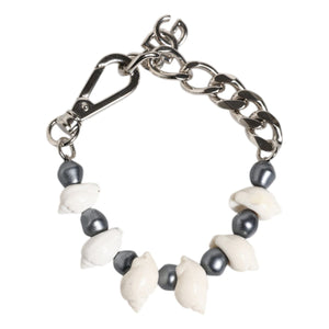 Dolce & Gabbana Silver Tone Brass Beaded Shell DG Logo Pendant Bracelet