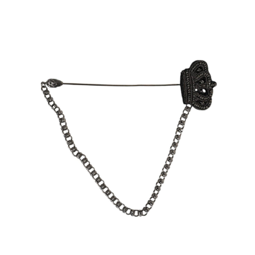 Dolce & Gabbana Silver Tone Brass Crown Chain Women Brooch Lapel Pin