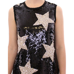 Gorgeous brand new with tags, 100% Authentic DOLCE & GABBANA Masterpiece black sequined clear crystal swarovski stars sheath mini dress. This item comes from the exclusive MainLine Dolce & Gabbana Collection.