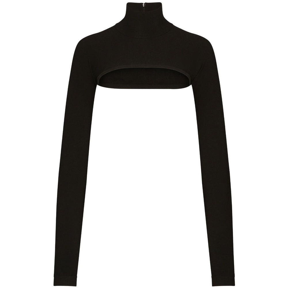 KIM DOLCE&GABBANA cropped high-neck top from DOLCE & GABBANA featuring black, high neck, cropped, rear zip fastening and long sleeves. Cropped high-neck top Size and Fit - This piece fits true to size. We recommend you get your regular size. Model is 1,75m / 5ft 8in wearing size 40 (IT)
