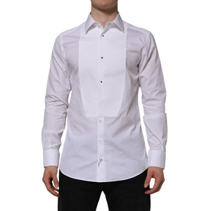 Dolce & Gabbana White Bib Cotton Poplin GOLD Formal Shirt