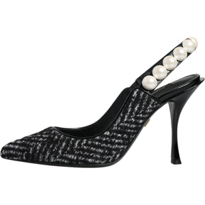 Dolce & Gabbana White Black Chevron Faux Pearl Slingback Shoes