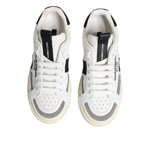 Dolce & Gabbana White Black Leather Low Top Sneakers Shoes