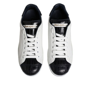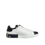Dolce & Gabbana White Black Leather Portofino Sneaker Shoes