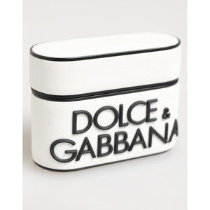 Dolce & Gabbana White Black Rubber Logo Embossed Accessory Airpods Case