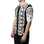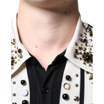 Dolce & Gabbana White Black Silk Studded Stone Crystal Shirt