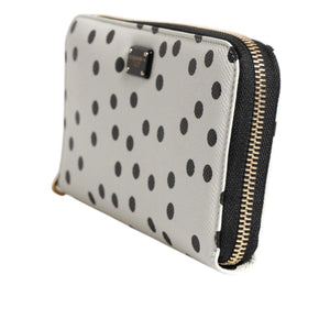 Dolce & Gabbana White Black Striped Leather Zip Around Continental Wallet