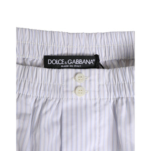 Dolce & Gabbana White Blue Cotton Striped Button Fly Shorts Swimwear