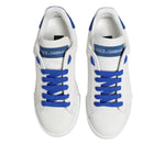 Dolce & Gabbana White Blue Leather Low Top Sneakers Shoes