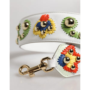 Dolce & Gabbana White Calfskin Raffia Embroidered Patchwork Shoulder Strap