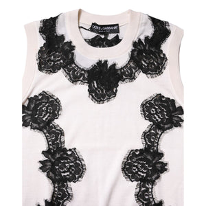 Dolce & Gabbana White Cashmere Floral Lace Detailing Tank Top
