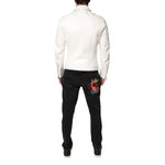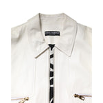 Dolce & Gabbana White Collared Full Zip Biker Coat Jacket