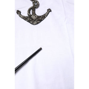 Dolce & Gabbana White Cotton Anchor Chain Embroidery Tank Top