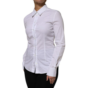 Dolce & Gabbana White Cotton Collared Long Sleeves Shirt Top