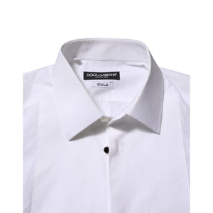Dolce & Gabbana White Cotton GOLD Bib Poplin Formal Shirt