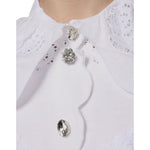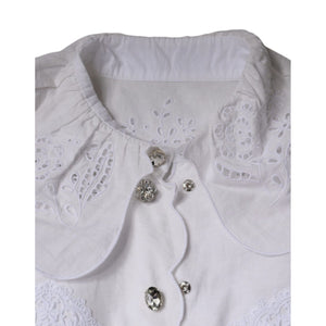 Dolce & Gabbana White Cotton Lace Trim Collared Blouse Top