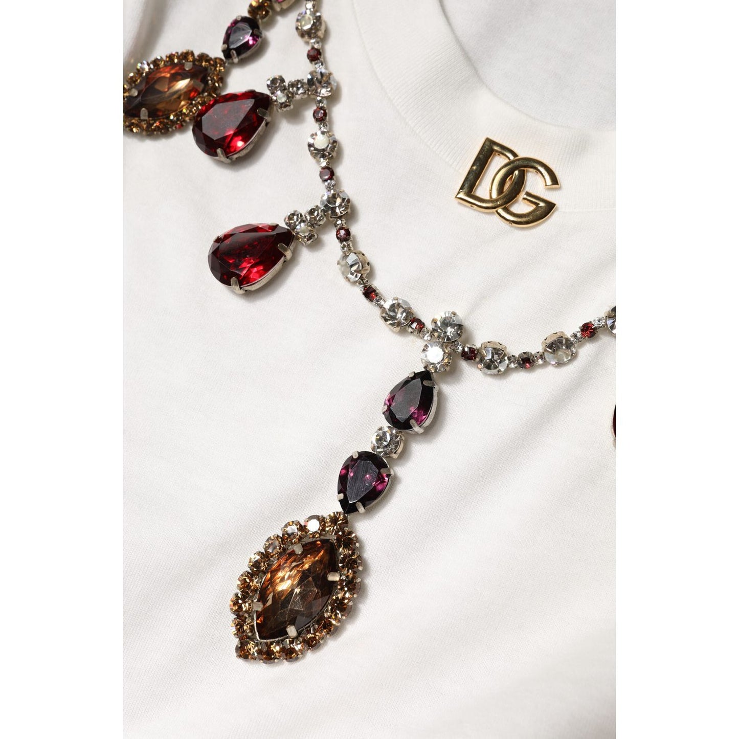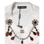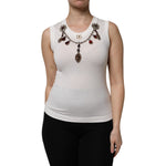 Dolce & Gabbana White Cotton Logo Crystal Detailing Tank Top