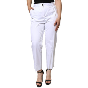 Dolce & Gabbana White Cotton Mid Waist Tapered Denim Jeans