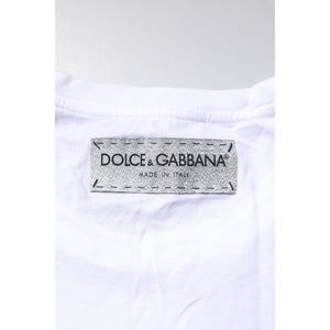 Dolce & Gabbana White Cotton Printed Round Neck Top T-shirt