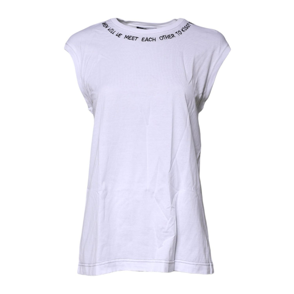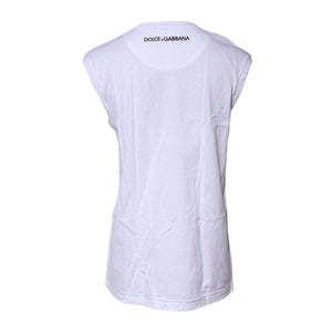 Dolce & Gabbana White Cotton Sleeveless Printed Tank T-shirt