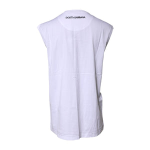 Dolce & Gabbana White Cotton Sleeveless Printed Tank T-shirt