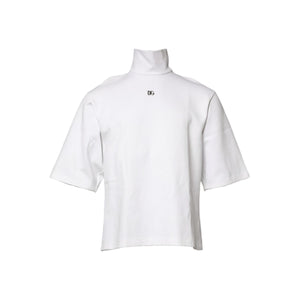 Dolce & Gabbana White Cotton Turtleneck DG Applique T-shirt
