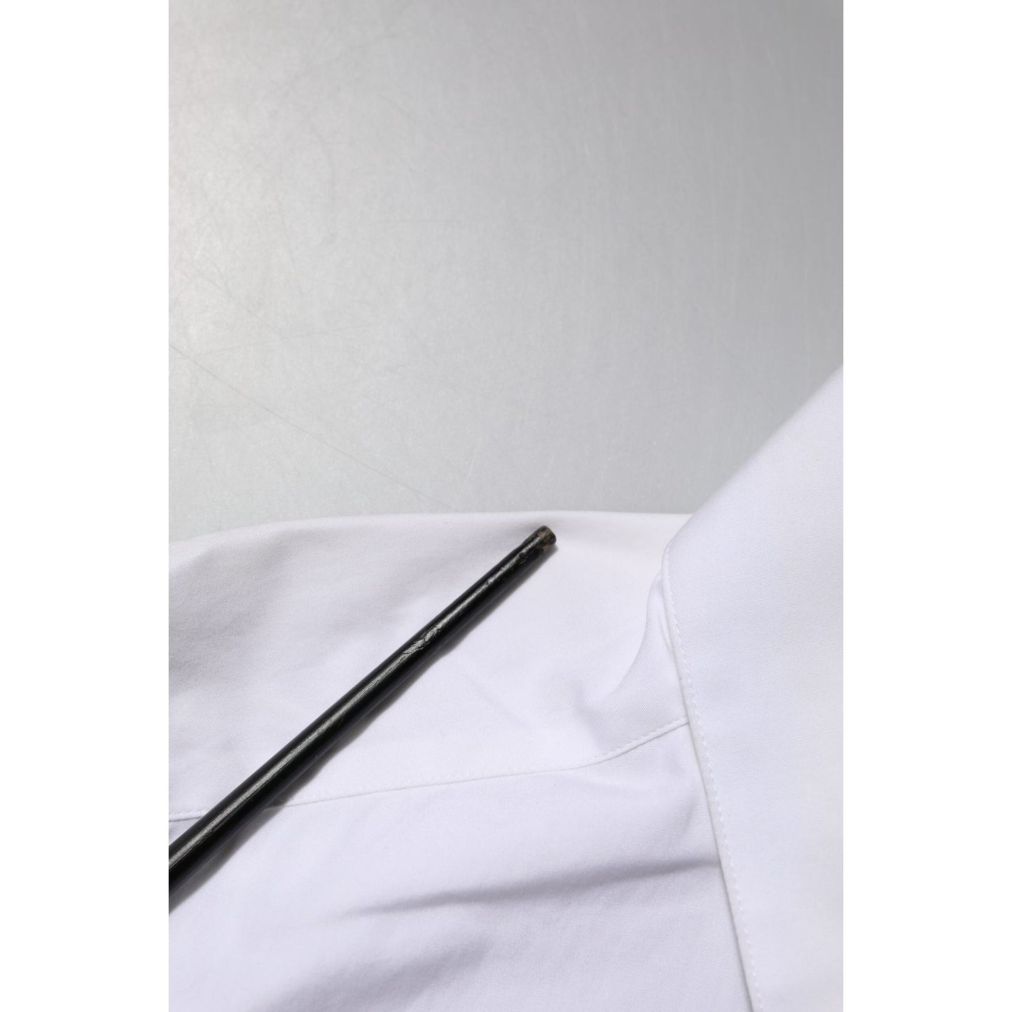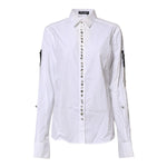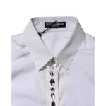 Dolce & Gabbana White Crystal Embellished Collared Shirt Top