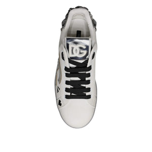 Dolce & Gabbana White Crystal Logo Portofino Sneakers Shoes