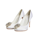 Dolce & Gabbana White Crystals Peep Toe Satin Pumps Shoes