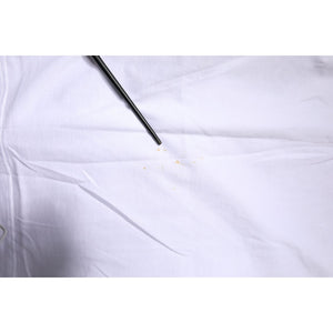 This item has a minor defect, there are stains and repaired holes on the front and back side (see pictures for details).
