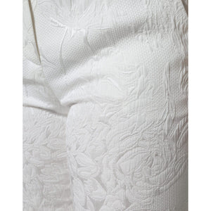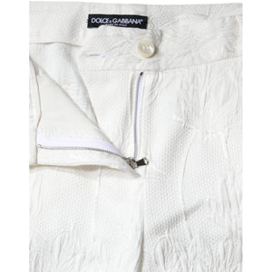 Dolce & Gabbana White Floral Brocade Cotton Cropped Pants
