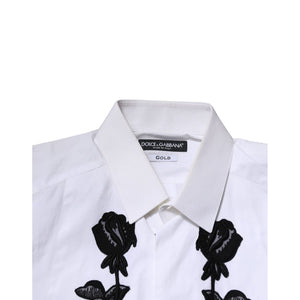 Dolce & Gabbana White Floral Embroidery Men GOLD Formal Shirt
