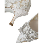 Dolce & Gabbana White Floral Lace DG Crystal Pumps Shoes