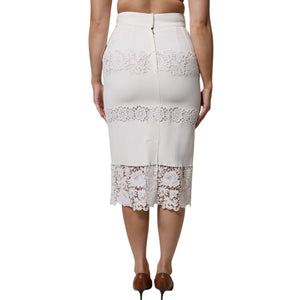 Dolce & Gabbana White Floral Lace High Waist Pencil Cut Skirt