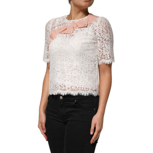 Dolce & Gabbana White Floral Lace Short Sleeves Blouse Top