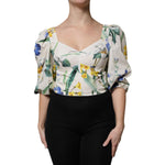 Dolce & Gabbana White Floral Puff Sleeves Crop Blouse Top