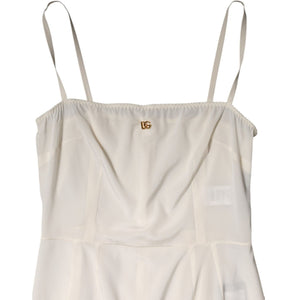 Dolce & Gabbana White Full Slip DG Logo Silk Dress Sleepwear
