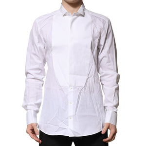 Dolce & Gabbana White GOLD Bib Poplin Dress Men Formal Shirt