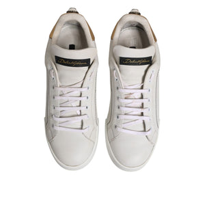 Dolce & Gabbana White Gold Leather Low Top Sneakers Shoes