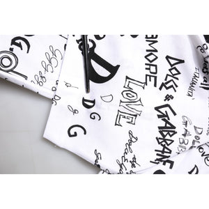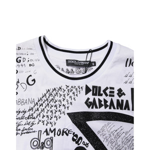 Dolce & Gabbana White Graffiti Print Cotton Crew Neck T-shirt