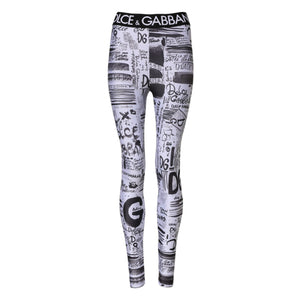 Dolce & Gabbana White Graphic HighWaist Skinny Leggings Pants