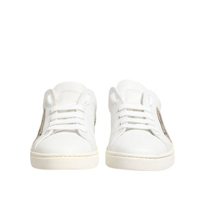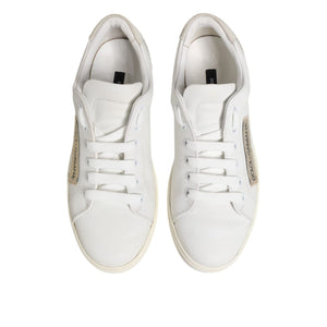 Dolce & Gabbana White Gray Leather Low Top Sneakers Shoes