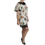 Dolce & Gabbana White Lace Floral Vase Shift Mini Dress