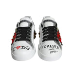 Dolce & Gabbana White Leather Floral Studded Sneakers Shoes