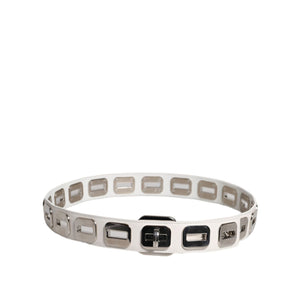 Dolce & Gabbana White Leather Gold Tone Rotating Buckle Belt