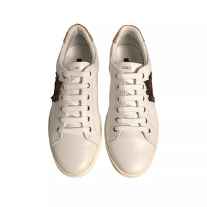 Dolce & Gabbana White Leather Heart Embellished Sneakers Shoes