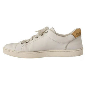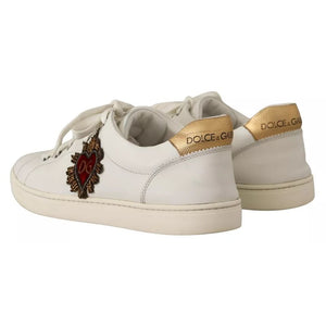 Dolce & Gabbana White Leather Heart Low Top Casual Sneakers Shoes