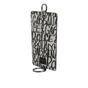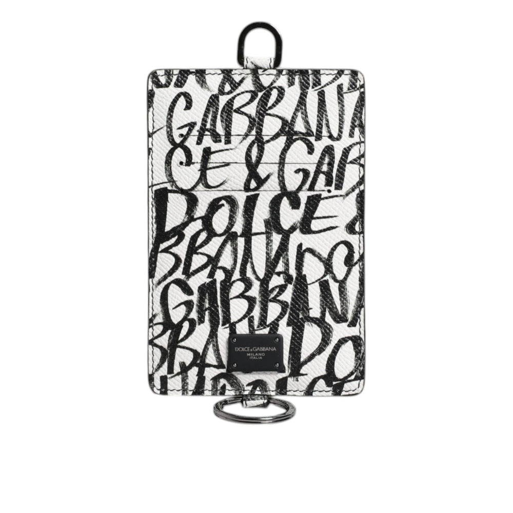 Dolce & Gabbana White Leather Lanyard Logo Print Card Holder Wallet