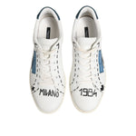 Dolce & Gabbana White Leather Printed Low Top Sneakers Shoes