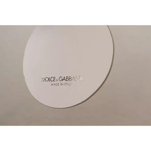 Dolce & Gabbana White Leather Printed Metal Silver Tone Keyring Keychain